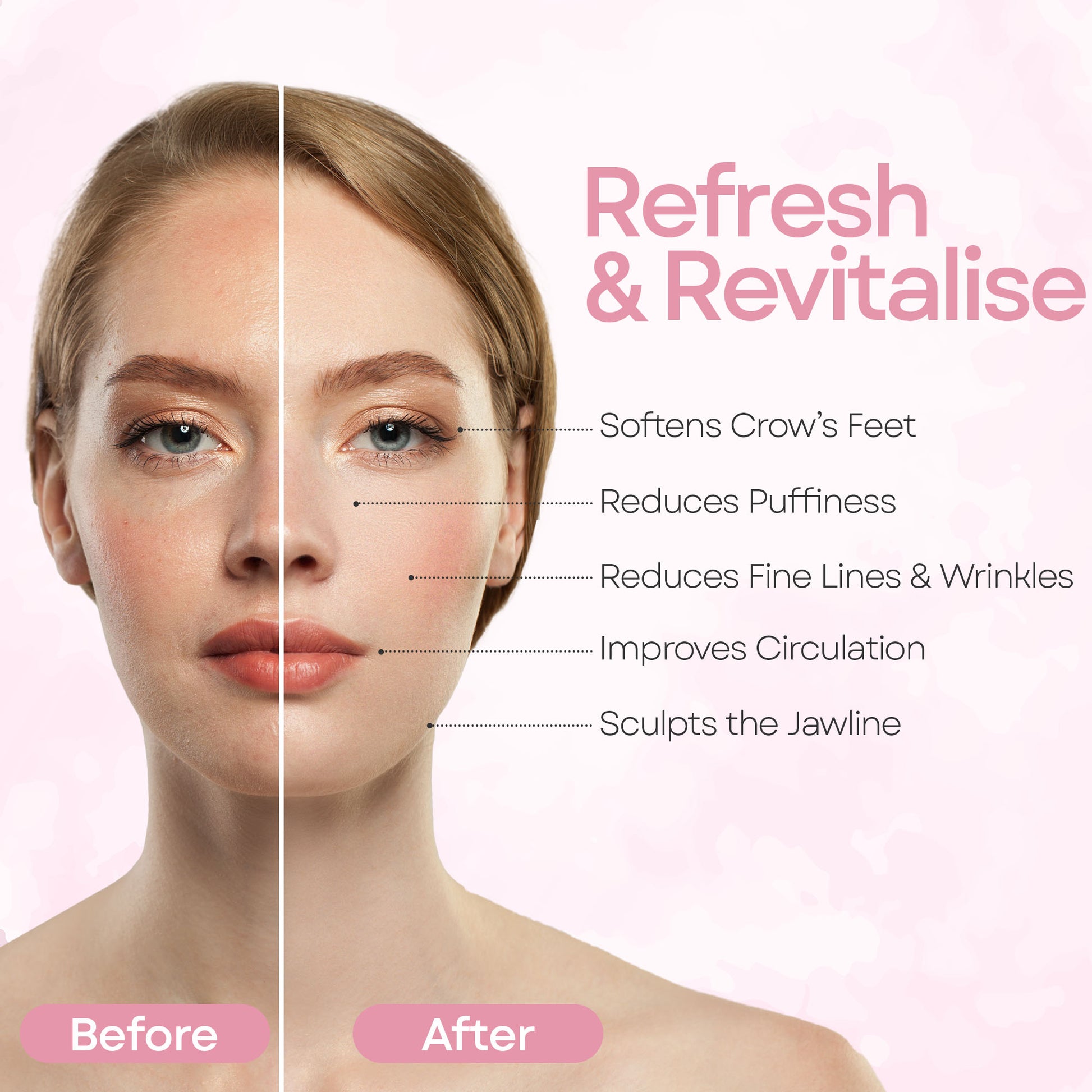 The Skin Chi Rose Quartz Massage Set is made from real rose quartz, the crystal of love and emotional healing. This set includes both a Gua Sha and facial roller to lift, sculpt, and promote lymphatic drainage for glowing skin. Regular use helps reduce puffiness, improve circulation, and enhance the absorption of your skincare products.
