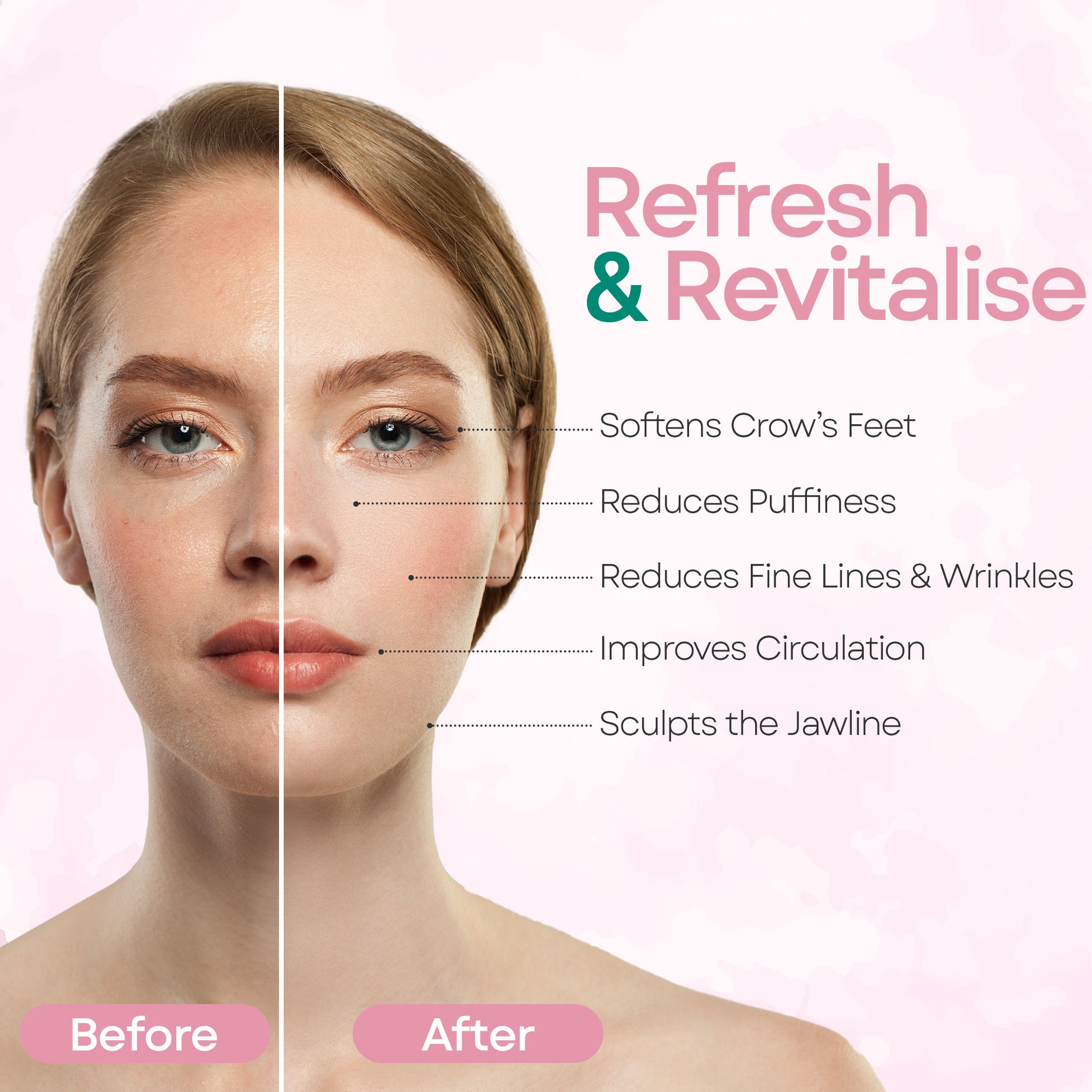The Skin Chi Rose Quartz Roller is made from 100% natural rose quartz, known for its calming and healing energy. Its dual-ended design helps reduce puffiness, refine pores, and sculpt facial contours for a lifted appearance. Regular use promotes lymphatic drainage, smooths fine lines, and leaves skin looking radiant and refreshed.