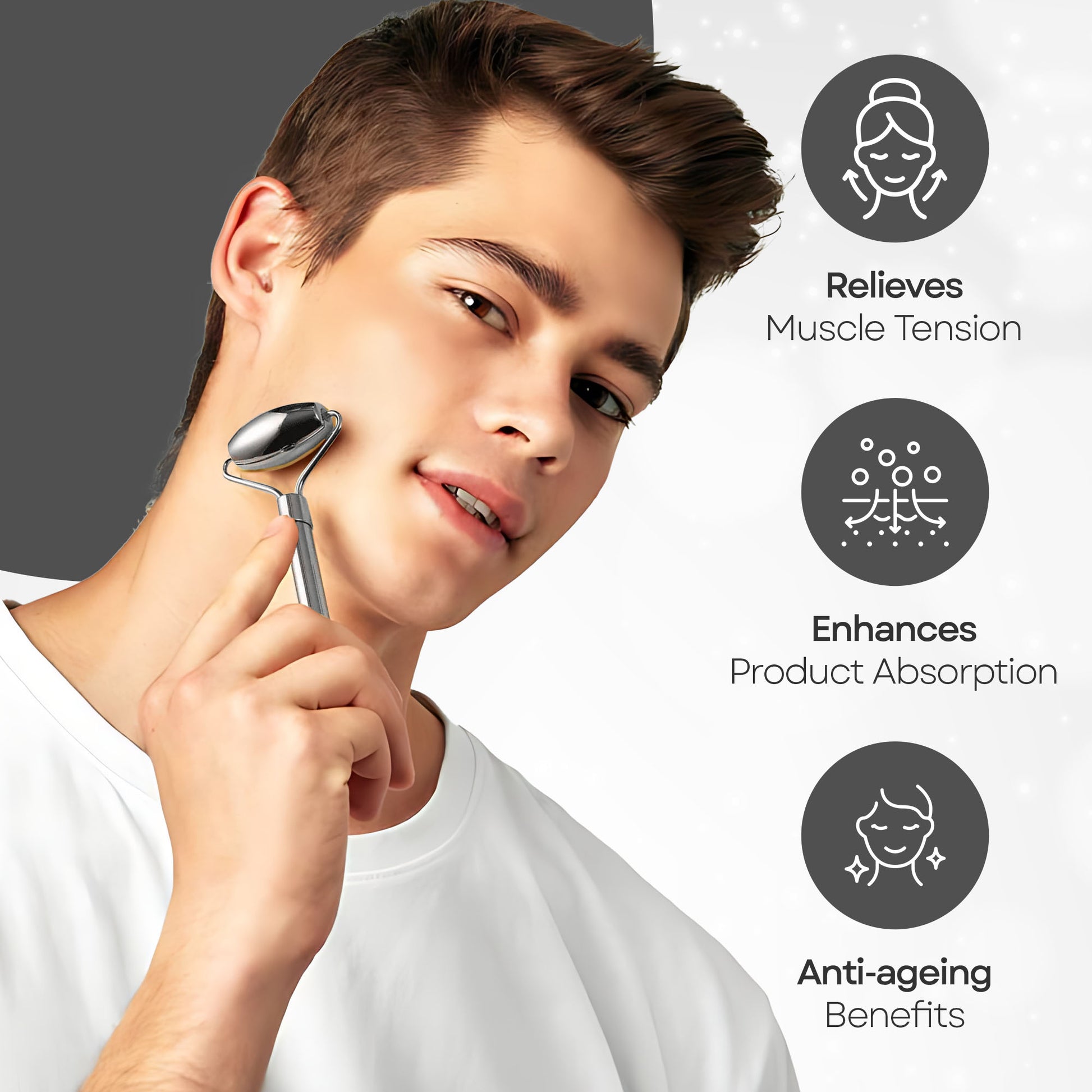 The Skin Chi Stainless Steel Roller is expertly weighted to deliver a deeper, more effective facial massage. Naturally ice-cold to the touch, it helps reduce puffiness, soothe inflammation, and refine pores for a refreshed, radiant complexion. A true spa-quality tool designed to elevate your at-home self-care ritual.